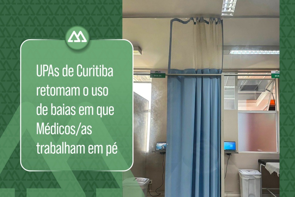 A Prefeitura de Curitiba retomou o uso de biombos (baias) como consultórios em Unidades de Pronto Atendimento (UPAs) de Curitiba. Esses espaços são utilizados para consultas médicas, mas não oferecem privacidade, segurança e muito menos a ergonomia necessária para o trabalho dos profissionais da Medicina no atendimento à população.