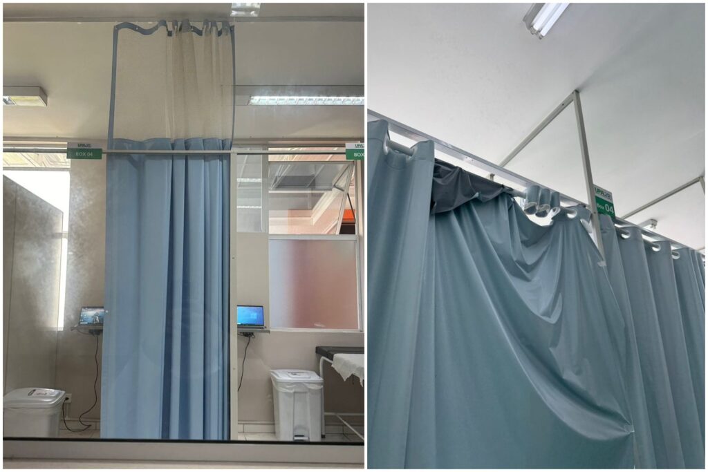 As baias não têm nenhum tipo de isolamento acústico, inviabilizando o sigilo médico. Não há mesa nem cadeira para que o/a médico/a possa sentar e realizar seu trabalho de registrar o atendimento e gerar uma receita. As unidades não têm sequer uma porta, mas somente cortinas.